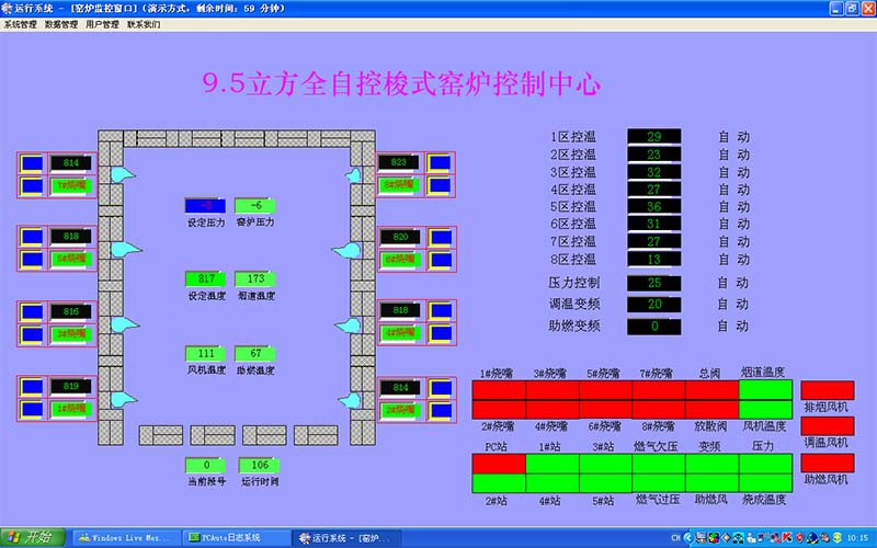 本系统系全自动智能控温窑炉控制系统,系统运行放心可靠,系统采用先进的脉冲燃烧方式,在保证烧成工艺的前提下能够更大限度地节约能源,采用先进的队列循环控制办法,容入了速度型连续控制方式,保证窑内良好的气流循环,从而更加提高了节能力度及产品的烧成品质。