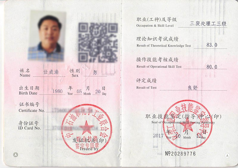 三废处理资格证书